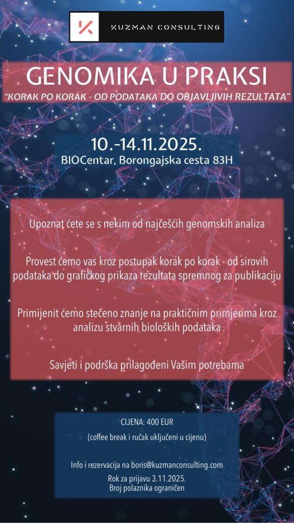 Na radionici „Genomika u praksi“ naučit ćete kako samostalno provesti najčešće analize – od sirovih podataka do rezultata spremnih za publikaciju.